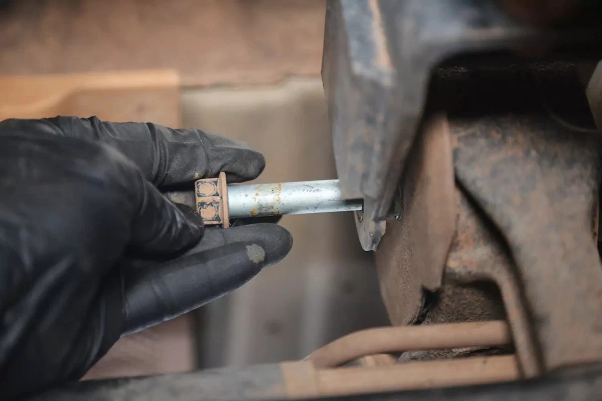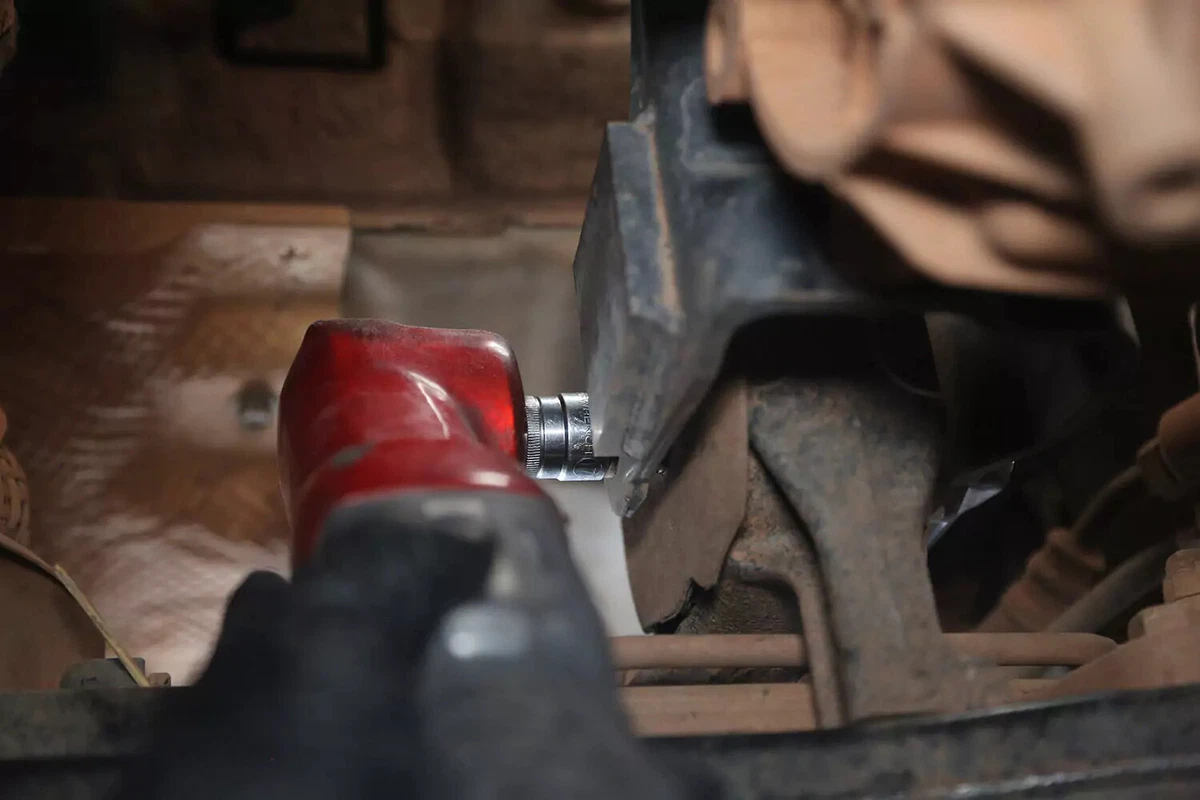 Нашият демонстрационен автомобил има напречен болт, който се отстранява с гаечен ключ от едната страна и гнездо от другата. Те могат да бъдат трудни за премахване в тесни помещения. Използвайте прекъсвач, ударен гаечен ключ или измамник, за да получите необходимия ливъридж.